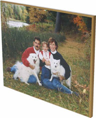 wood, then permanently sealed with a clear vinyl matte laminate.